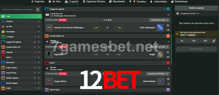 O 12bet oferece uma grande seleção de opções de apostas em e-sports com probabilidades competitivas